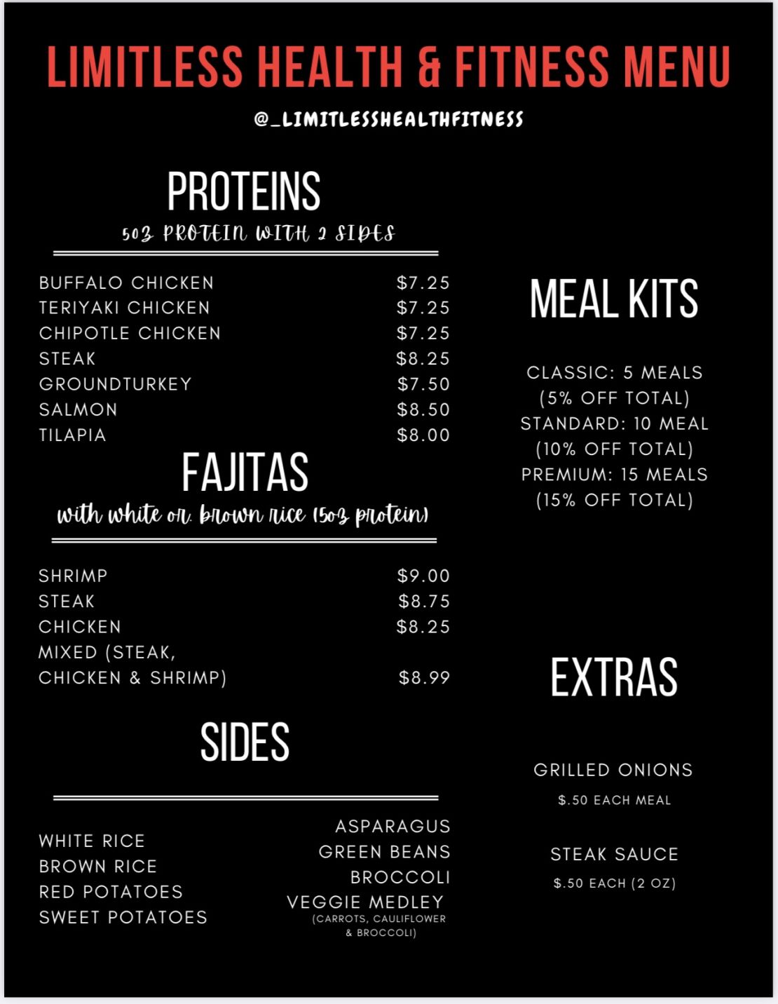Updates will be available on Instagram page. @_limitlesshealthfitness